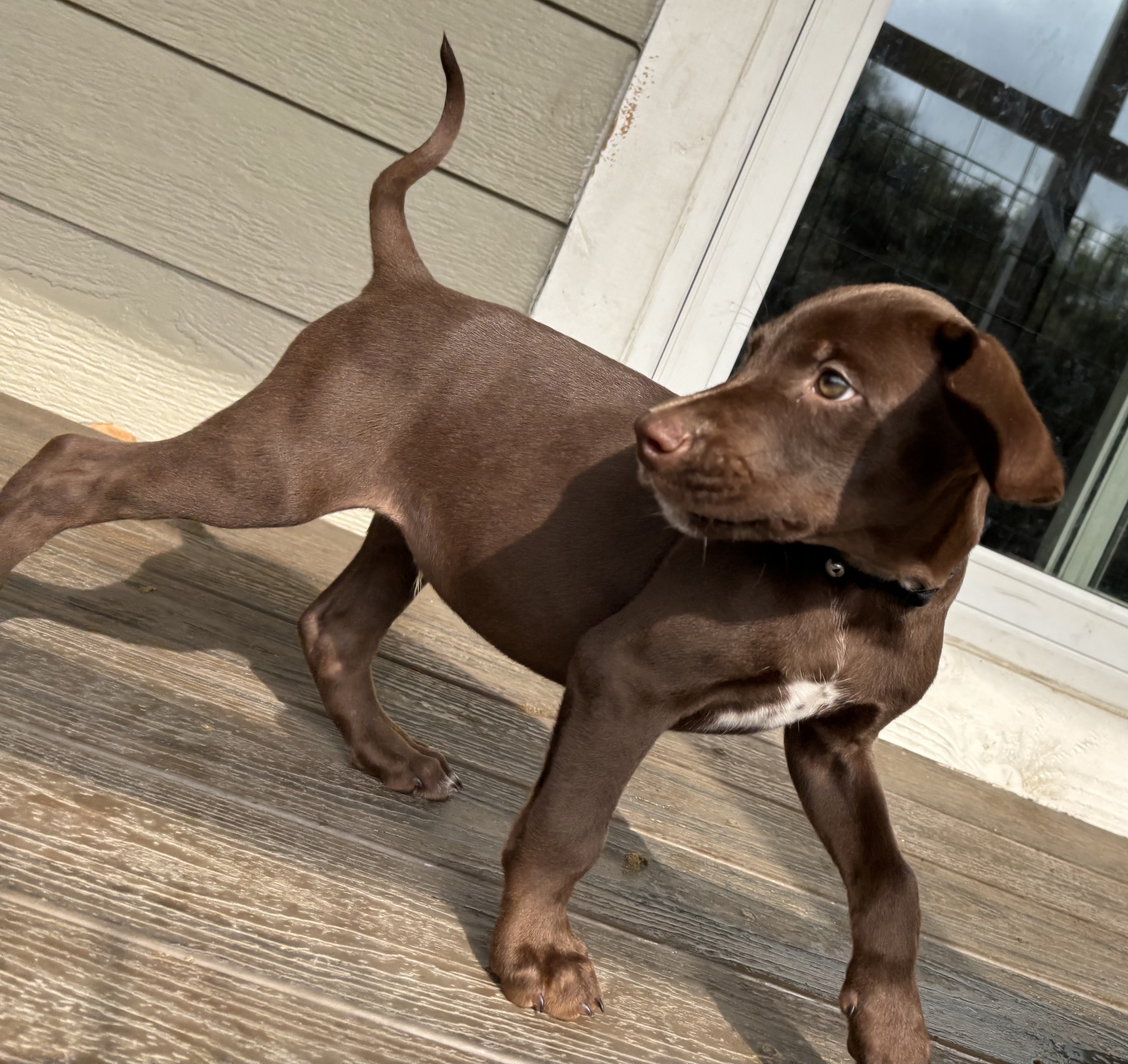 What Brownie's foster says. Meet Brownie, a puppy genius who's wise beyond his weeks and has his priorities straight: food first, cuddles second, everything else is negotiable. This sweet boy is already responding to his name and mastering "sit" (especially when snacks are involved—he's not above using his brilliance for treats). Watch in awe as he channels his inner apex predator, stalking his brother like a tiny lion before pouncing into epic wrestling matches. But don't let the hunting skills fool you—once playtime is over, Brownie is surprisingly chill for a puppy and turns into a professional cuddler. He's great with kids and large dogs, and if you're looking for a food-motivated smarty pants who's equal parts sweet snuggler and playful goofball, Brownie is your guy. Apply now before someone else bribes him away with treats! 🤎