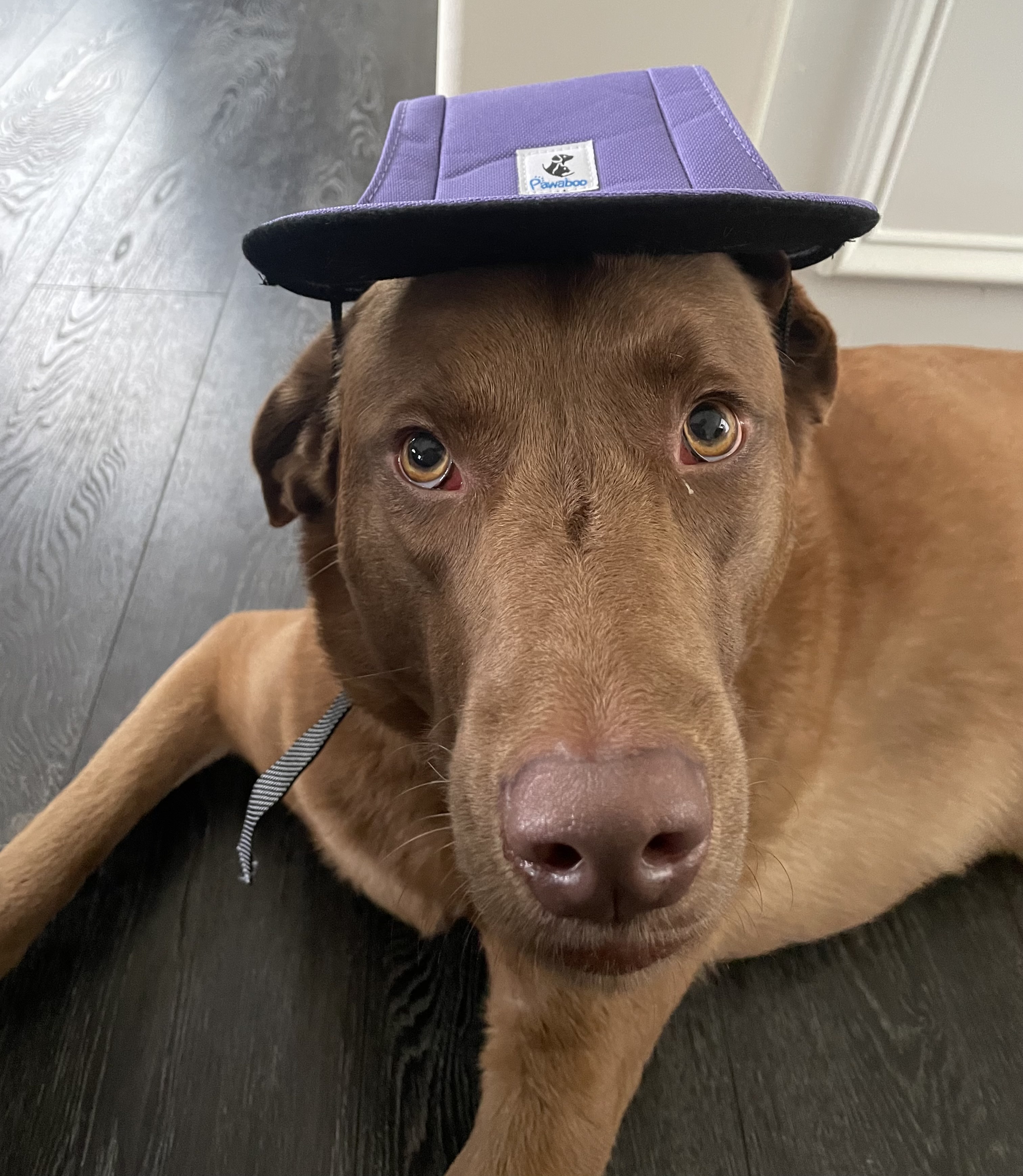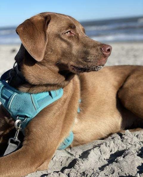 What Annie's Owners Say: It’s with a heavy heart that we’re looking to rehome our beloved chocolate Lab, Annie. She’s a 90-pound, lovable, lazy furball who lives for carrots and long naps. Unfortunately, she hasn’t adjusted well to our new baby, and we want to make sure she ends up in a home where she can feel completely comfortable and happy. Annie is house trained, knows all the basic commands, and can even roll over and play “bang.” She does have seasonal allergies, and she isn’t friendly with other dogs, so we’re hoping to find an adult-only household where she can be the only pet. She’s incredibly sweet and loyal, she even saved my life once by keeping me from walking outside when someone was hiding outside my door waiting for me to exit. She has a huge heart and so much love to give.