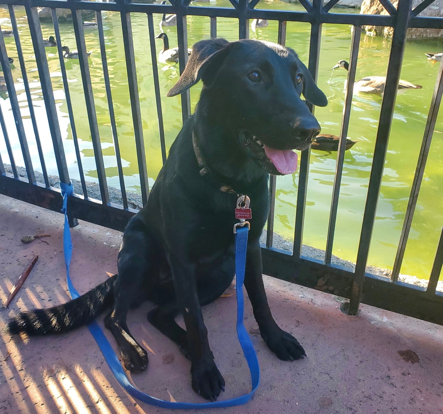 Daisy 1.8 years old, Black Lab Mix, ~66 lbs, spayed