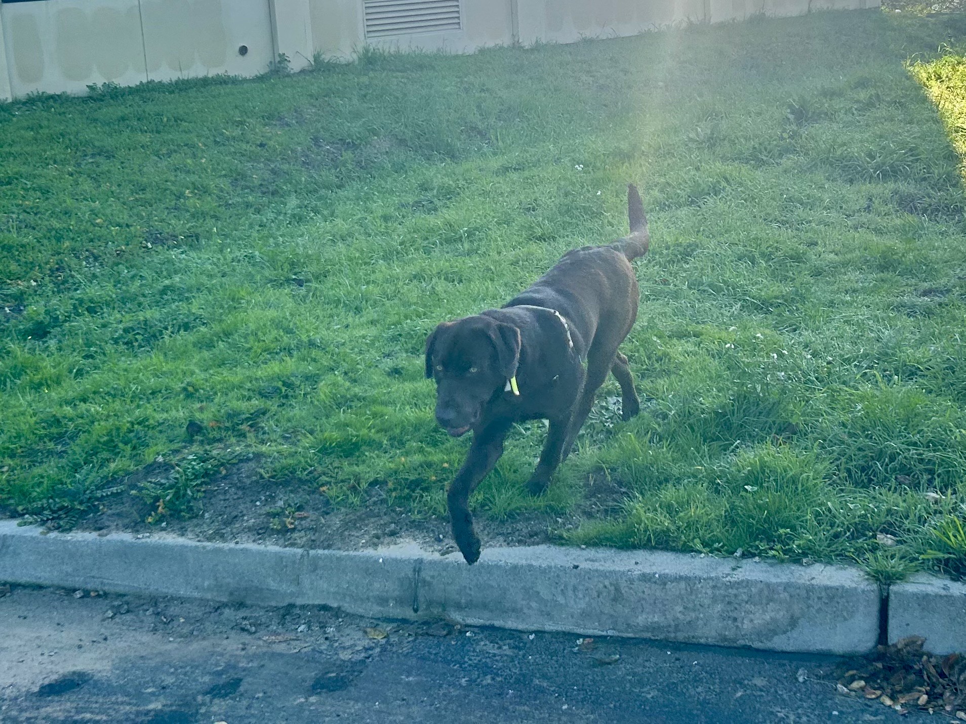 Background: Jack was picked up as a stray and made his way to Lab Rescue via the shelter in Dublin. A rescue networker reached out and asked if we had any room for a "big, goofy, strong chocolate Lab that would thrive with some training" We had one of our volunteers go out and meet Jack who said Jack appeared to be a good dog that needed a strong handler to work with and train him.