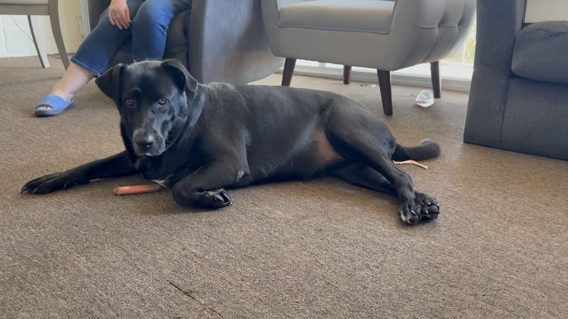Lucy: 3 year-old spayed female black Lab mix, 104 lbs