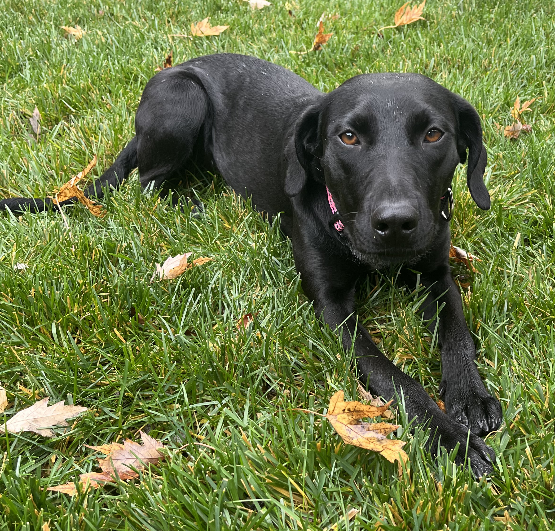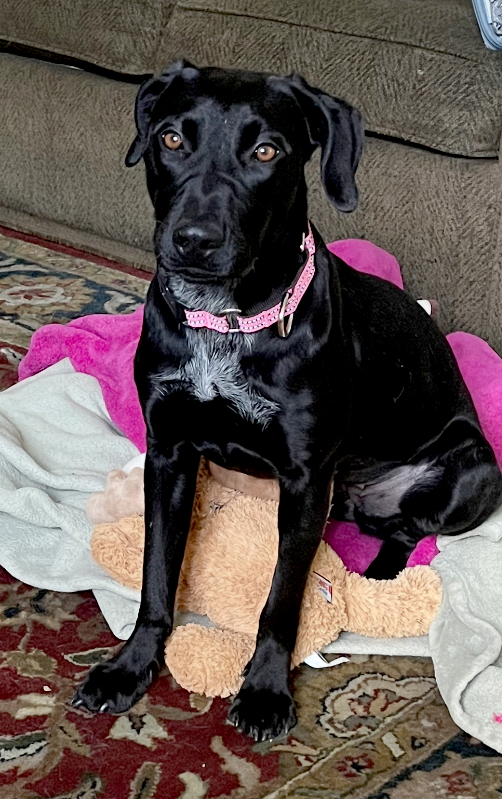 Maisie, 12 to 18 months old black lab mix, 35 lbs, Spayed