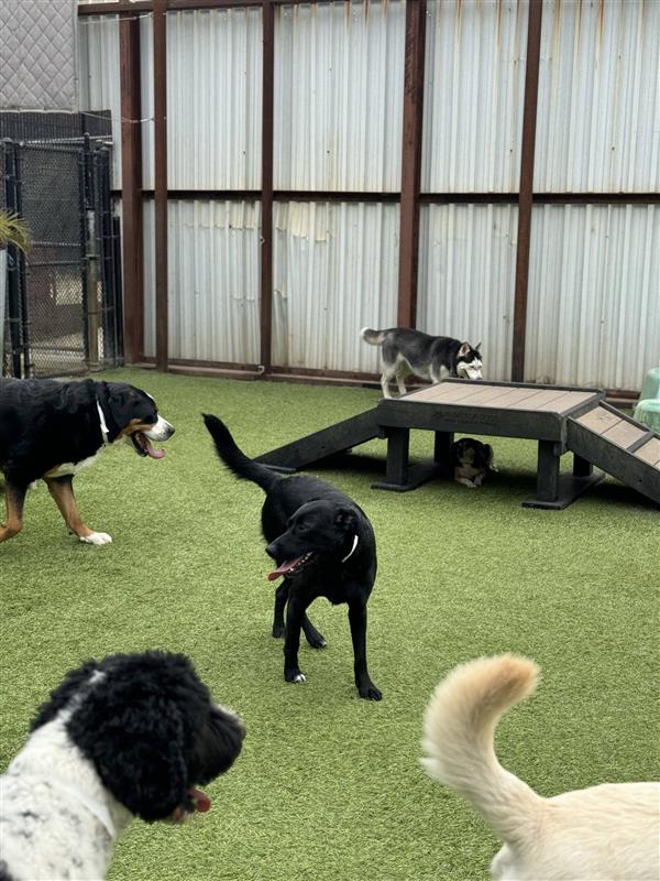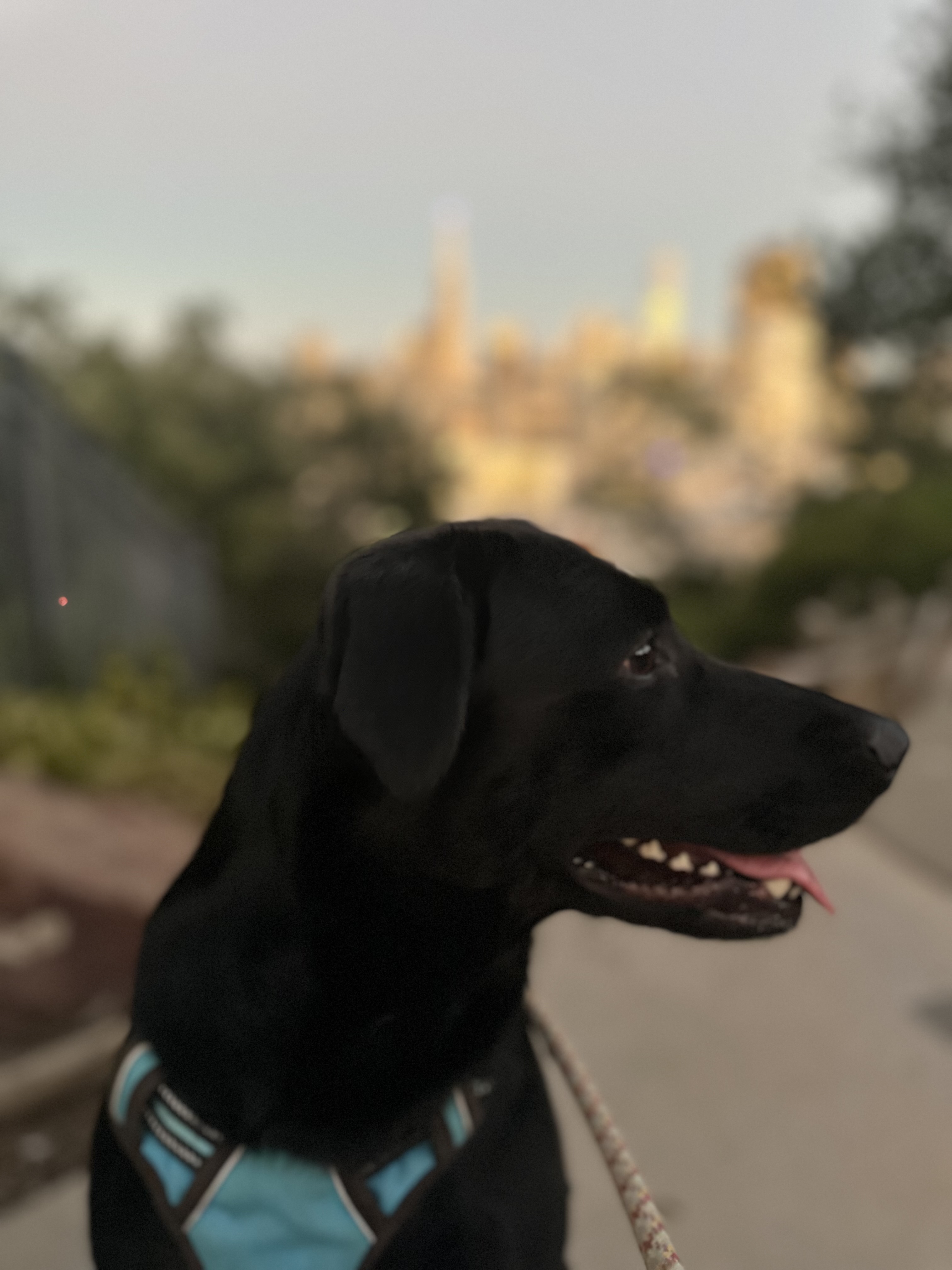 What Missy's Current Owners Say: Missy is a three-year-old Labrador retriever and Australian Shepherd mix she was adopted from the Toledo animal shelter in 2023 where she was born. Missy is very well socialized and gets along well with her human and dog friends. She is suspicious of cats but has cohabitated with one in the past. Missy has lived in San Francisco for close to two years and enjoys going to daycare, going for long walks and especially playing fetch. Although it should be noted, her favorite way to play it is more akin to keep away versus a true retrieval activity. Missy has gone on many long road trips and tolerates the car well. Missy knows many basic commands, including sit, stay, wait lay down and as well loose leash walking in most situations. She also knows a couple of commands in Korean and accidentally learned “paw or shake” as “sohn”. She does know come and touch for recall, however she does exercise her ability to selectively listen. We are still working on jumping up to say hello but getting better every day and occasionally she has a habit of counter surfing. She enjoys playing while eating or solving puzzles to eat. She enjoys destroying paper and boxes and stuff toys. Missy absolutely loves the vet and has absolutely no fear of going to the vet. When she did social is it with her I will go veterinarian, and it has always seemed like a happy place. Yes, she does get overheated really quickly in warm weather and she’s not very attracted to water especially when it’s raining. She has had fun playing in the ocean. Missy is very healthy has no medical issues, is spayed, microchipped and up-to-date on her vaccinations. Missy is very loved in her home and her rehoming is based on financial circumstances related to caring for her and another pet with complex needs. Missy really thrives with interaction a lot of exercise and is very food motivated. She loves learning and she loves exploring and going on adventures.