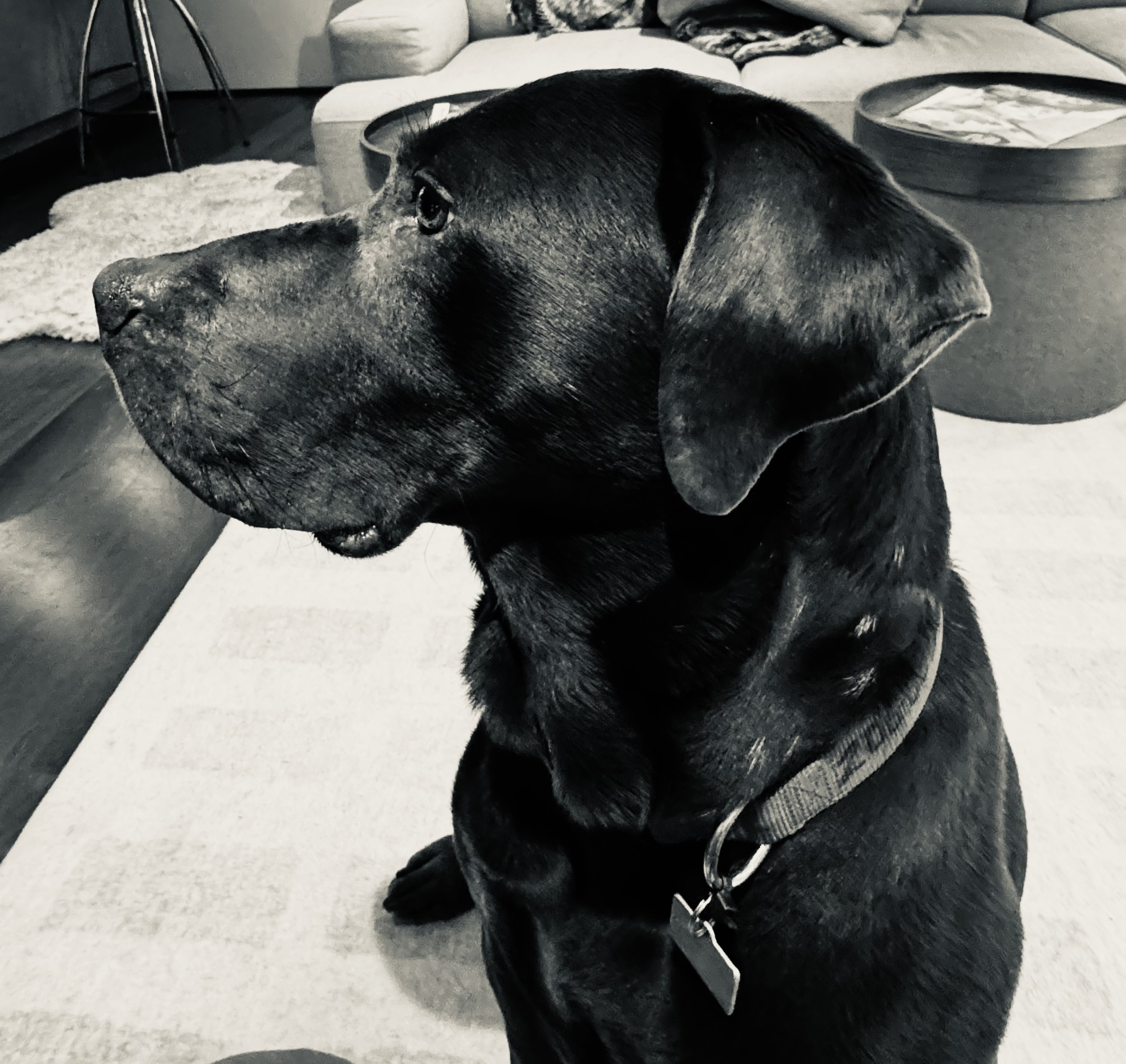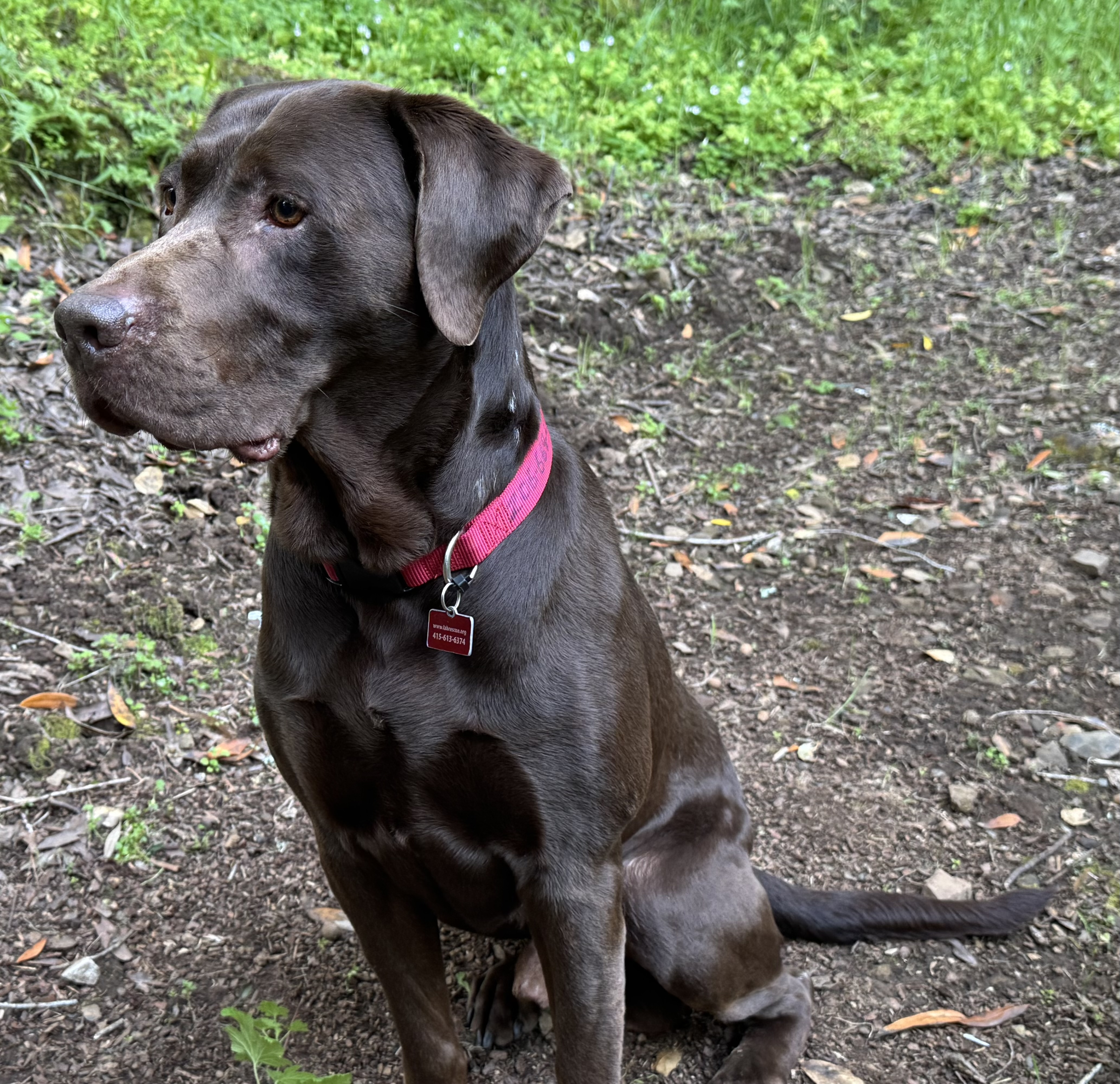 Monza 8-year-old intact male chocolate Lab, 67 lbs