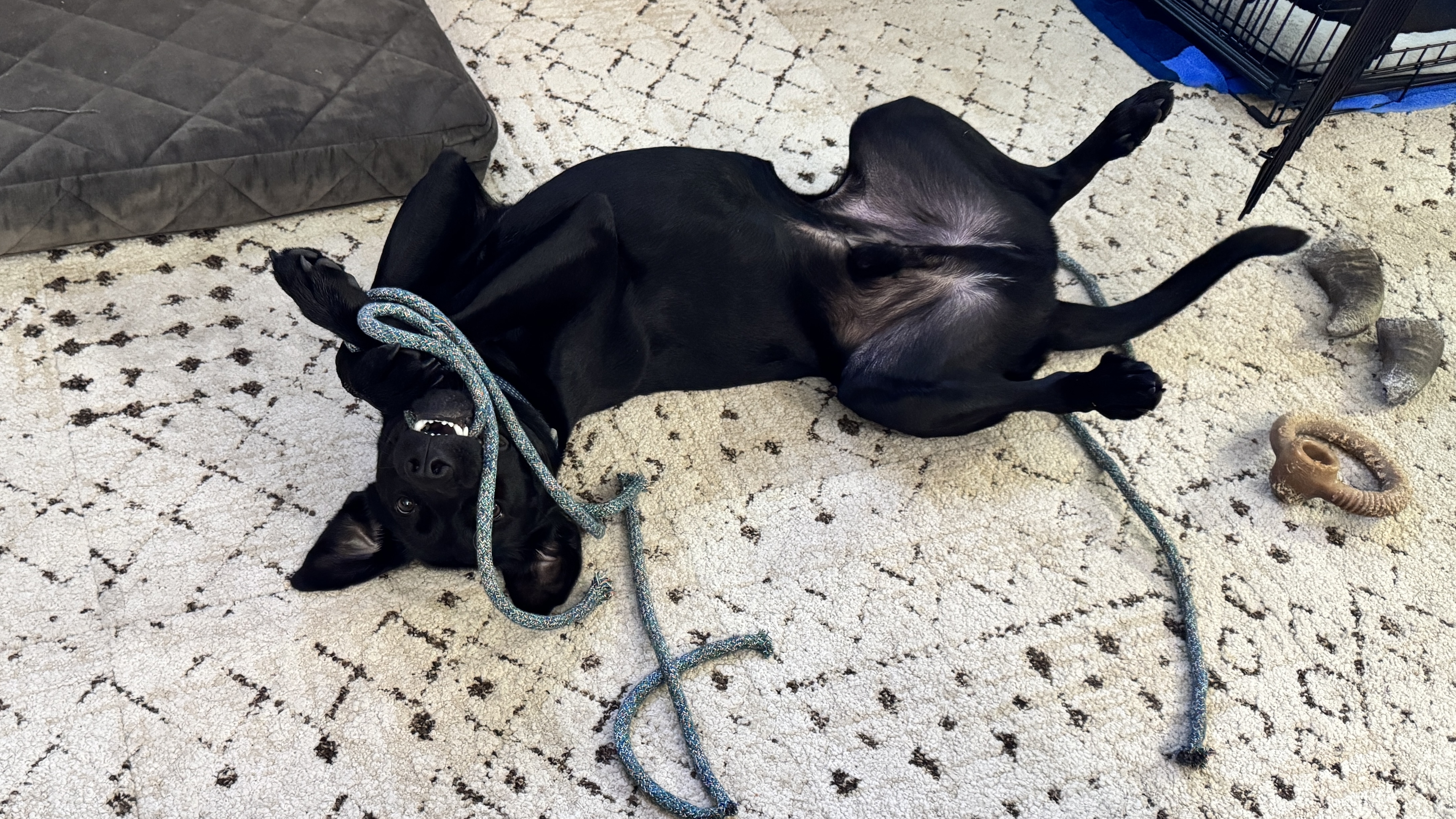 Panther loves going on walks but will need some leash training especially when meeting other dogs as he wants to play so much. He is house trained and his crate training has come along quickly.
