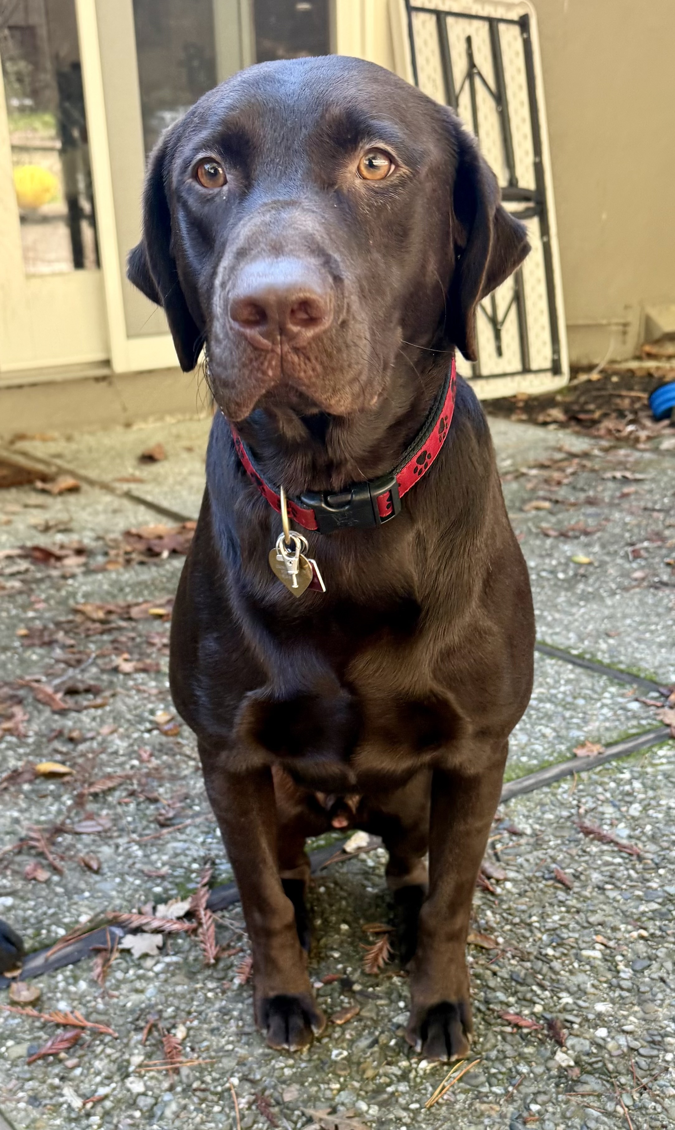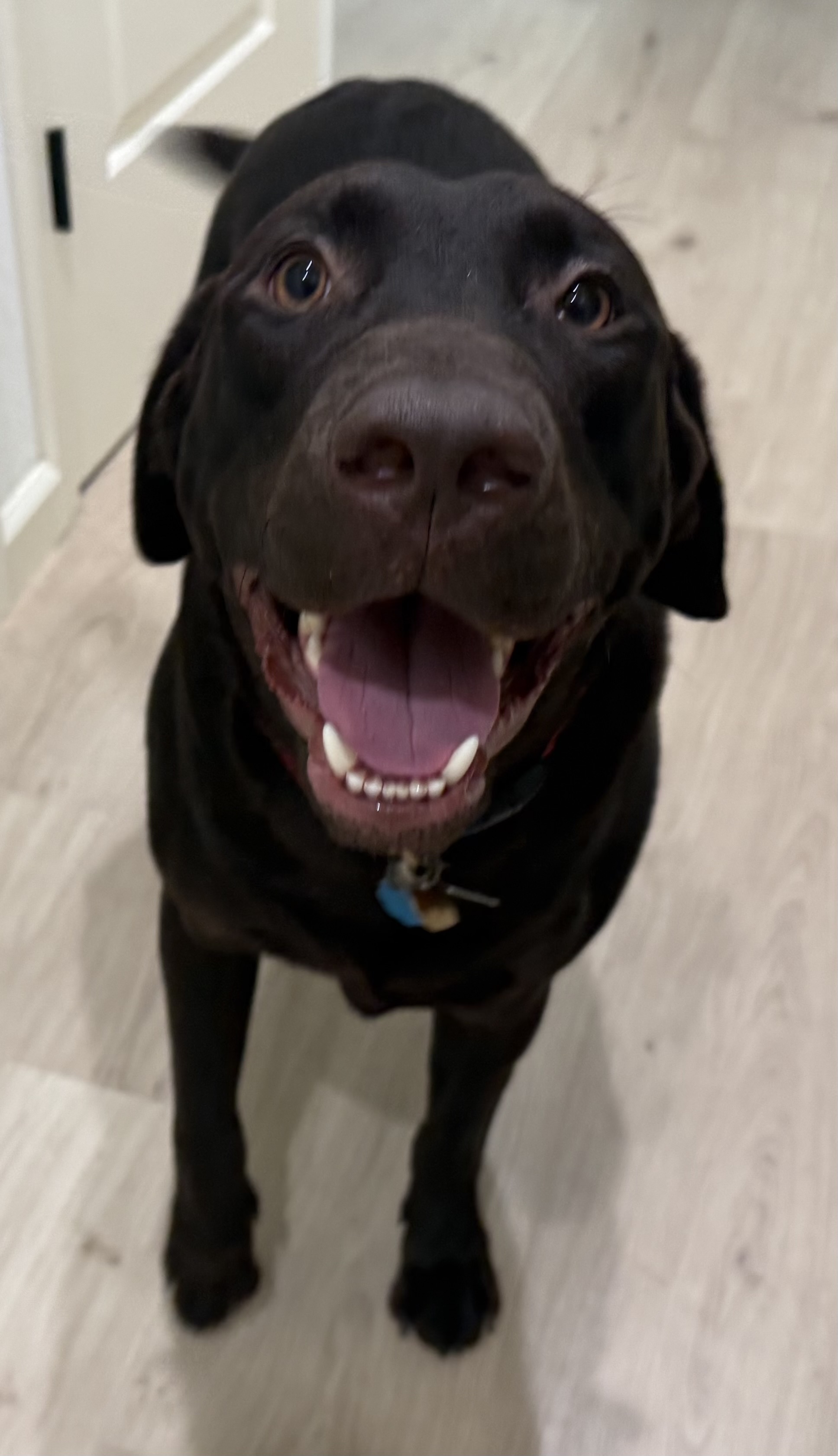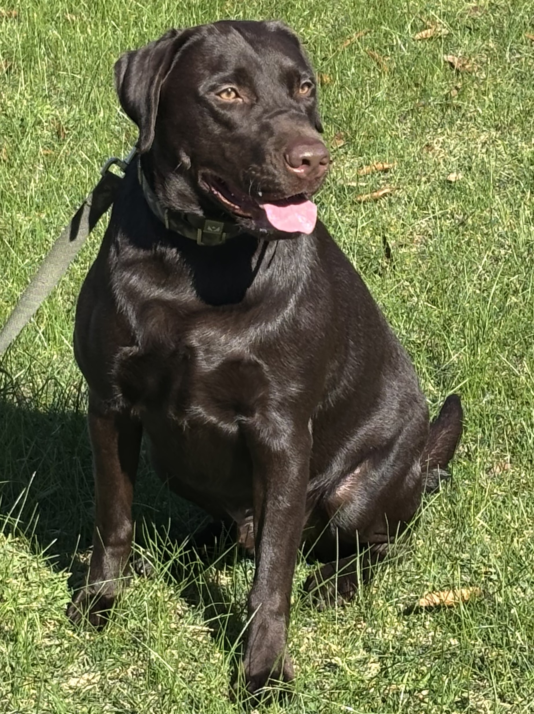 Reid 20-month-old male chocolate Lab 80 lbs Neutered