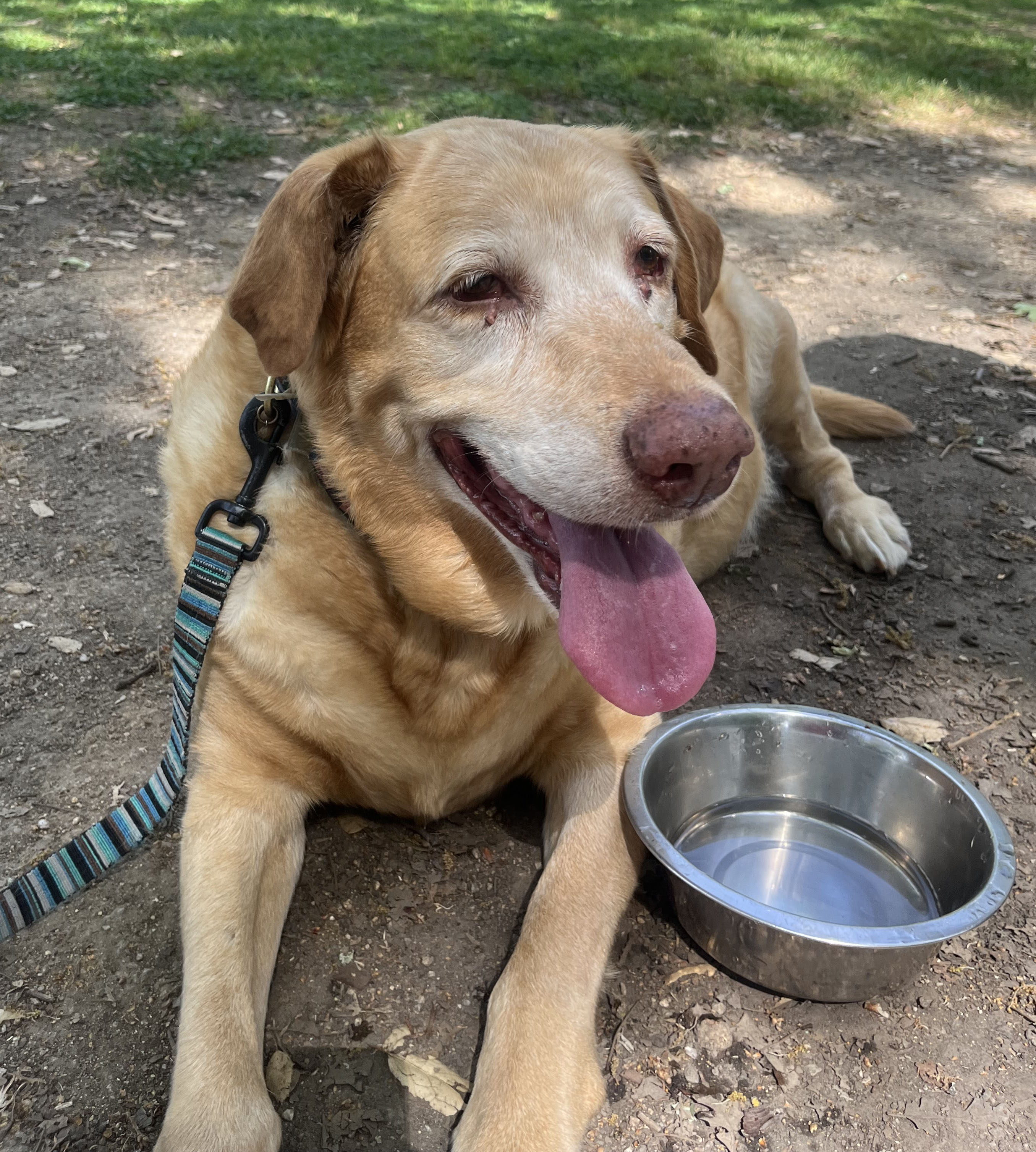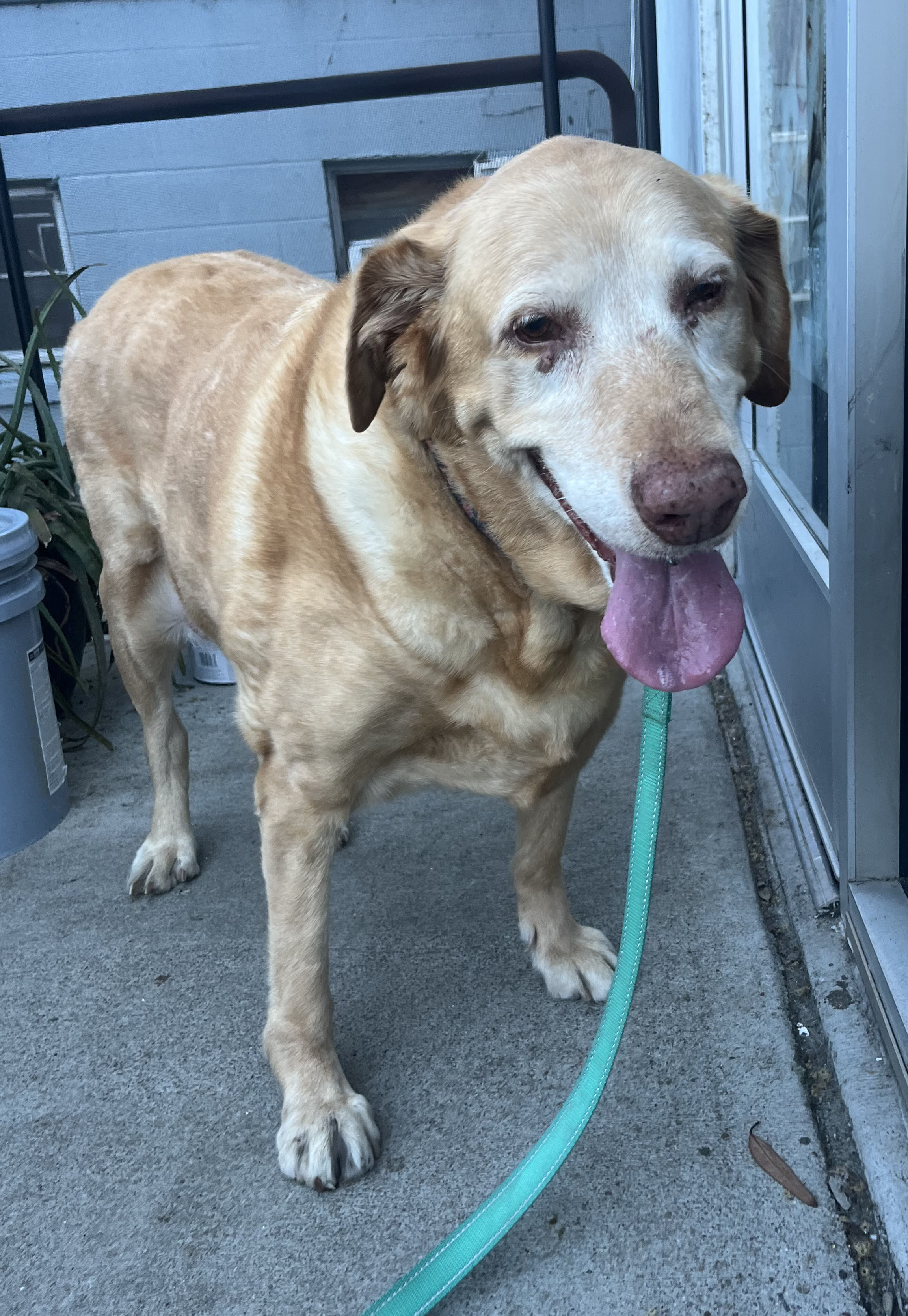 Rustie ~12-year old male Yellow Lab, 108 lbs. Neutered