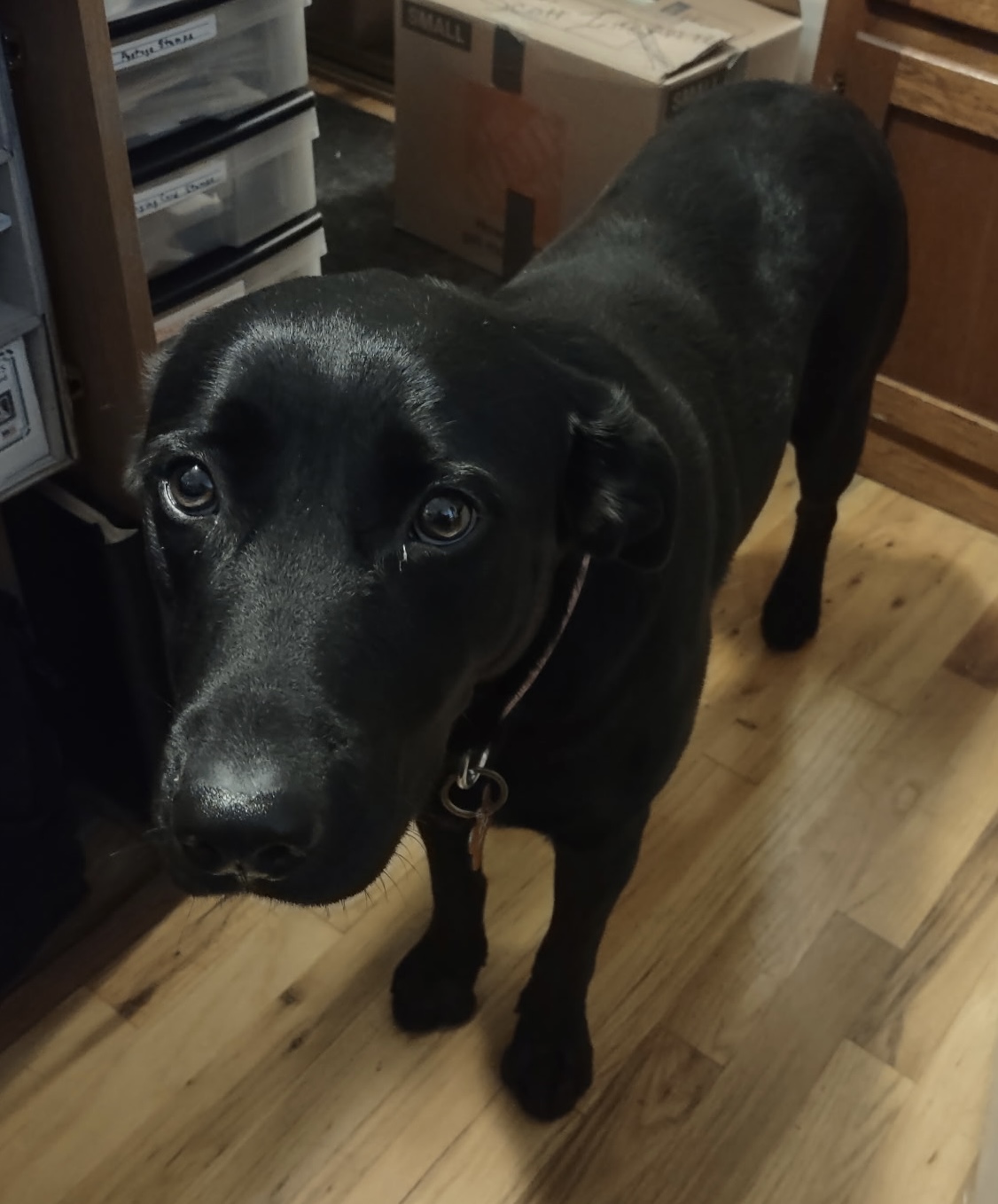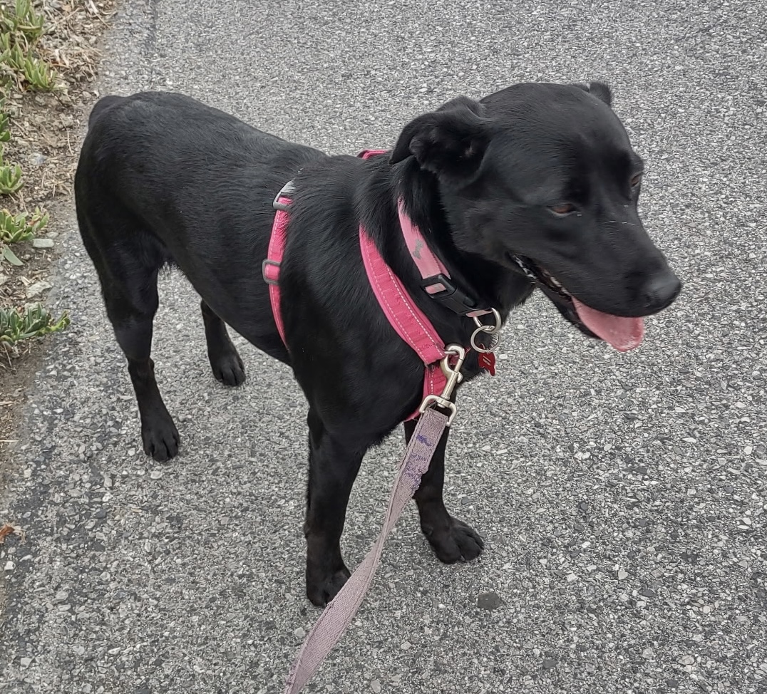 Summer 1-year-old 55-lb female, black Lab mix, spayed