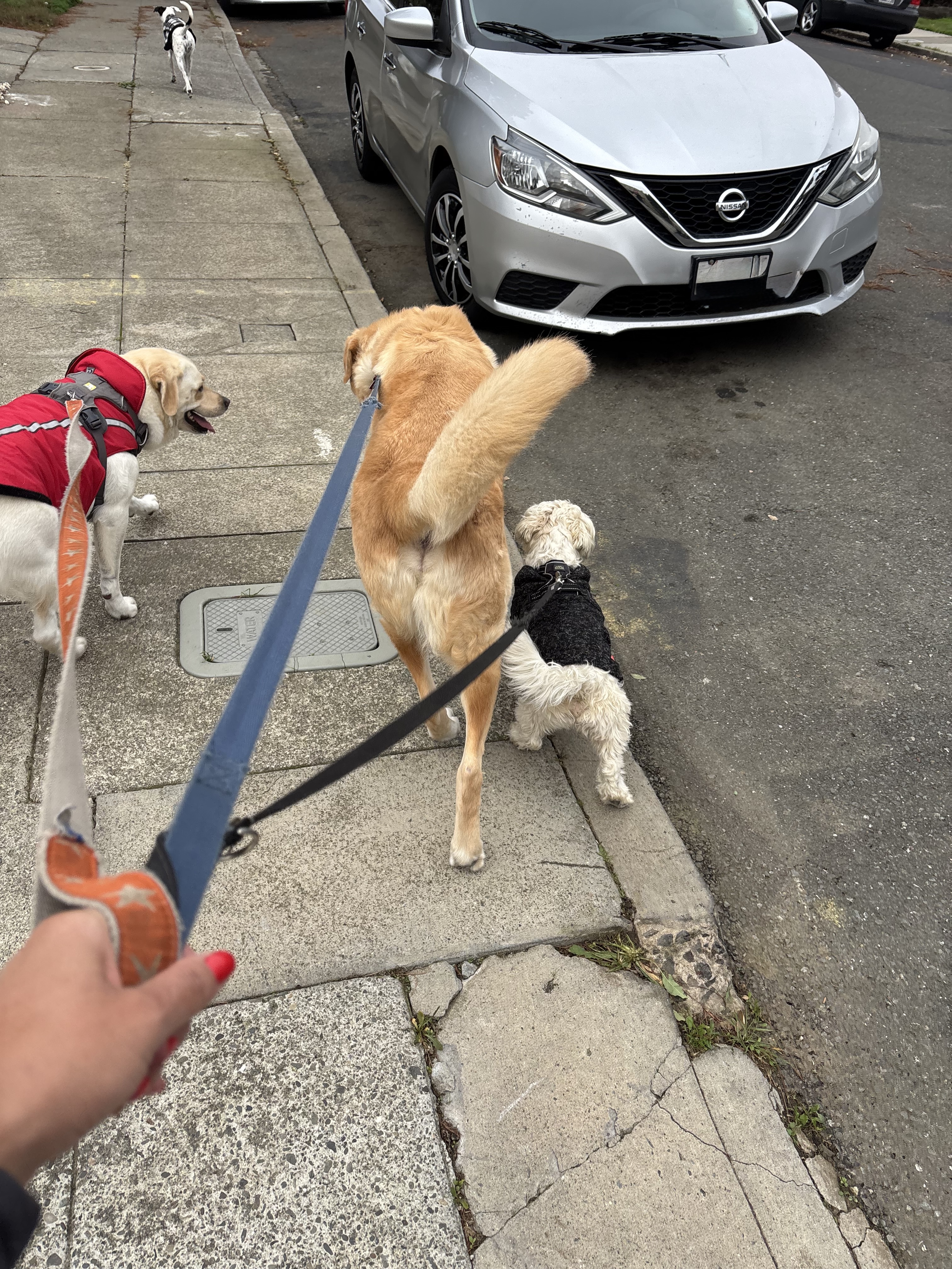 What Waylon's Foster Family Says: Waylon is 109 pounds gentle sweet giant and is the easiest Lab I have fostered. He loves cookies and takes them softly (not a snapping turtle). He loves belly rubs and wags his tail when you are talking sweetly to him. He stops on walks (when I stop) and he does not pull…However, If he sees a squirrel or a cat that is close in proximity, he is inconsistent about going after it or leaving it alone... I don’t get it…. He walks twice a day with all three of our dogs and there are no issues in our house with all the other dogs. He is totally housebroken - does not pee inside and will let me know when he needs to go outside. Waylon has a skin rash which we are working on with medicated shampoo and medicated mousse. Overall, he has been an amazing addition in our home and will be good with a home that has other dogs.