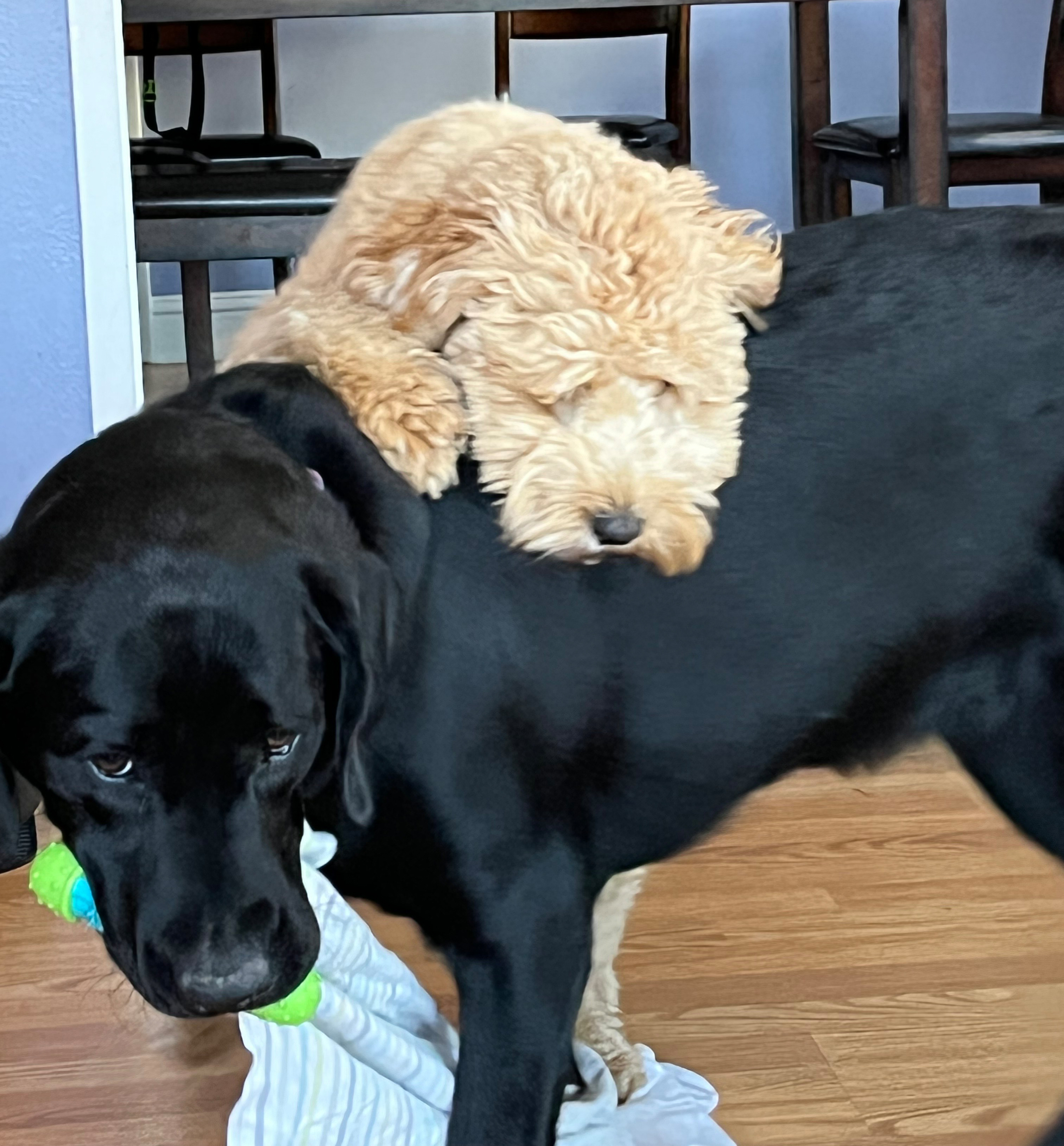 Background: he owner is rehoming Bubble due to no longer having the time for her with work and caring for two small children. She knows Bubble deserves more than she can currently provide. Bubble has been well taken care of and will need some basic obedience training as she gets excited when she sees new people and tends to jump. She also is a big puller on the leash! She is friendly but can get excited and jumpy when seeing new faces. With our family, she is calm and good with our kids. Our 2 year old has been playing with her since she was an infant. A few of my 7 year old's friends have felt intimidated due to her jumpy nature. Like many Labradors she will chew on toys and small objects when she gets bored for long periods. She is trained not to go on the couches or on the human beds. Whenever we’ve had other dogs over, she has been friendly and has had a good time. She is also good in the car. She is a quiet dog in general, but can bark to let you know she is hungry, or to let you know someone is at the door. When I am alone at the house, I feel safer at night because of Bubble.