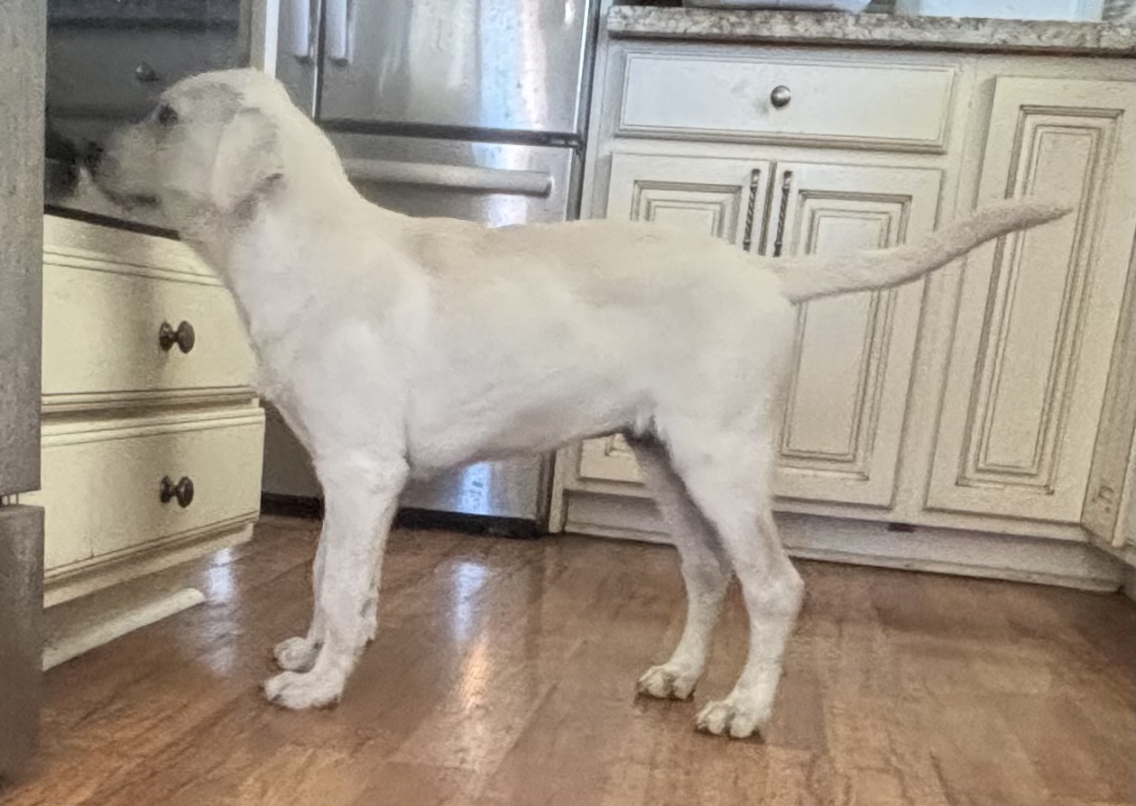 Red -- 14-week-old male, white mix puppy, 33 lbs.