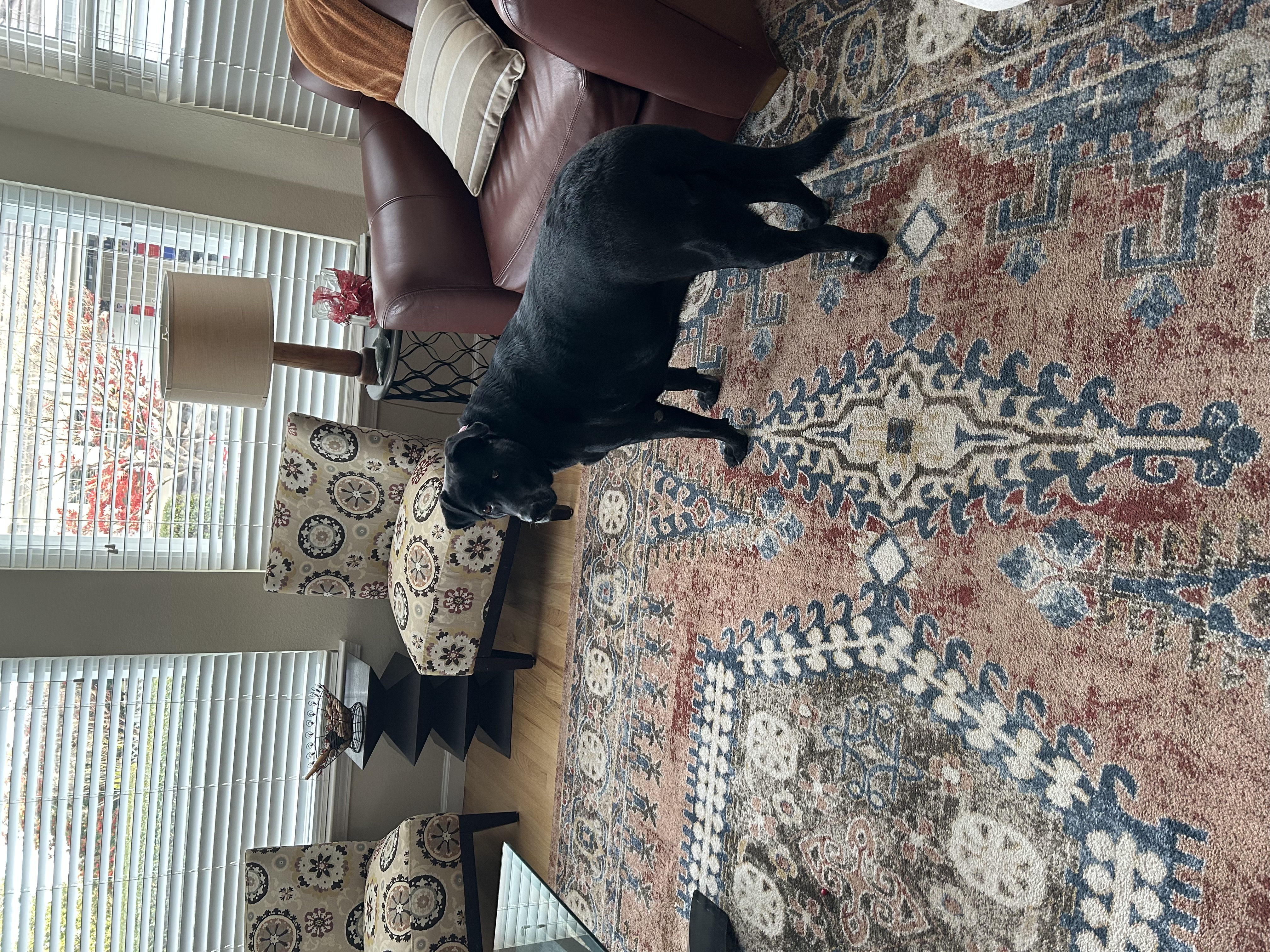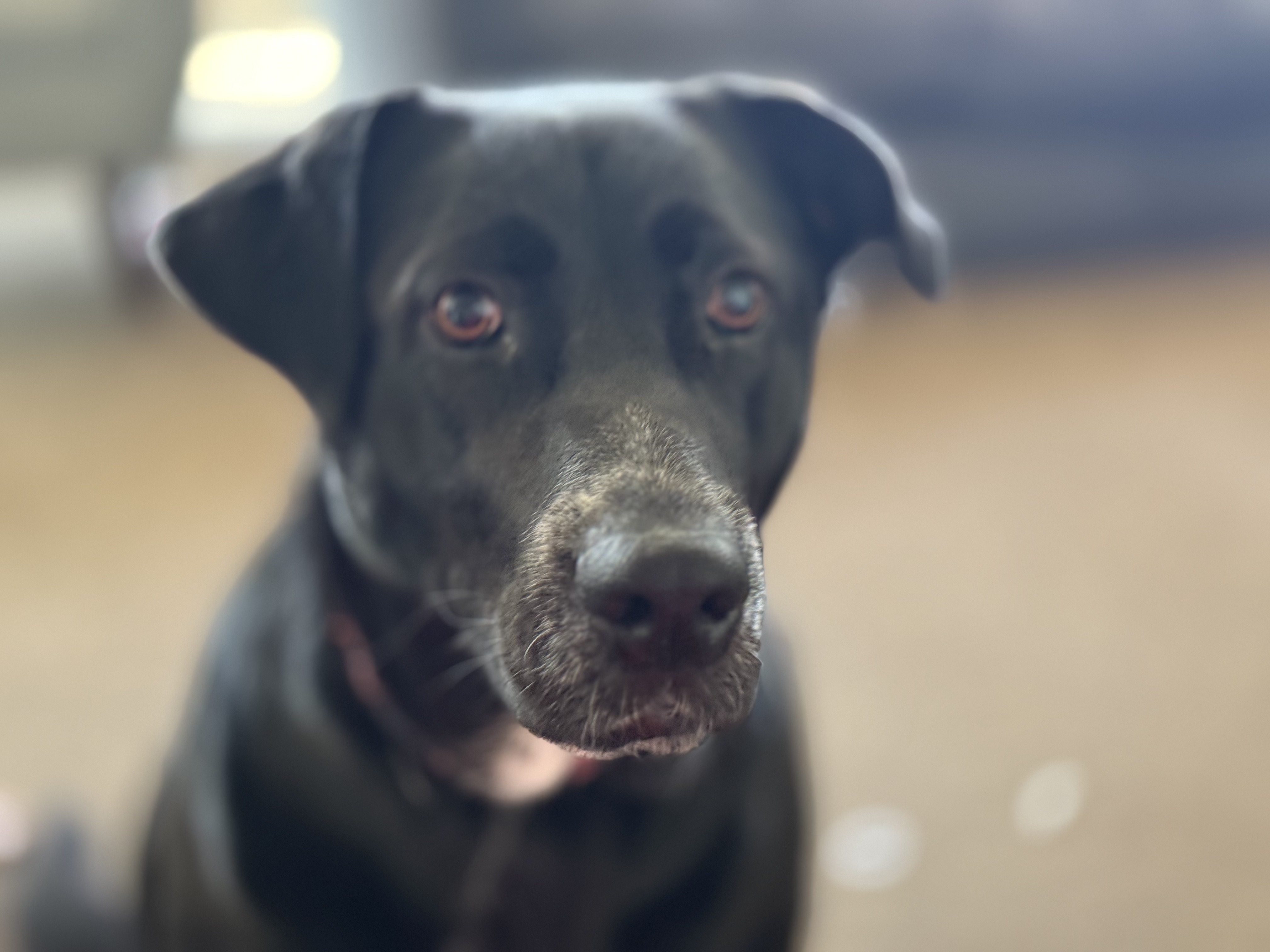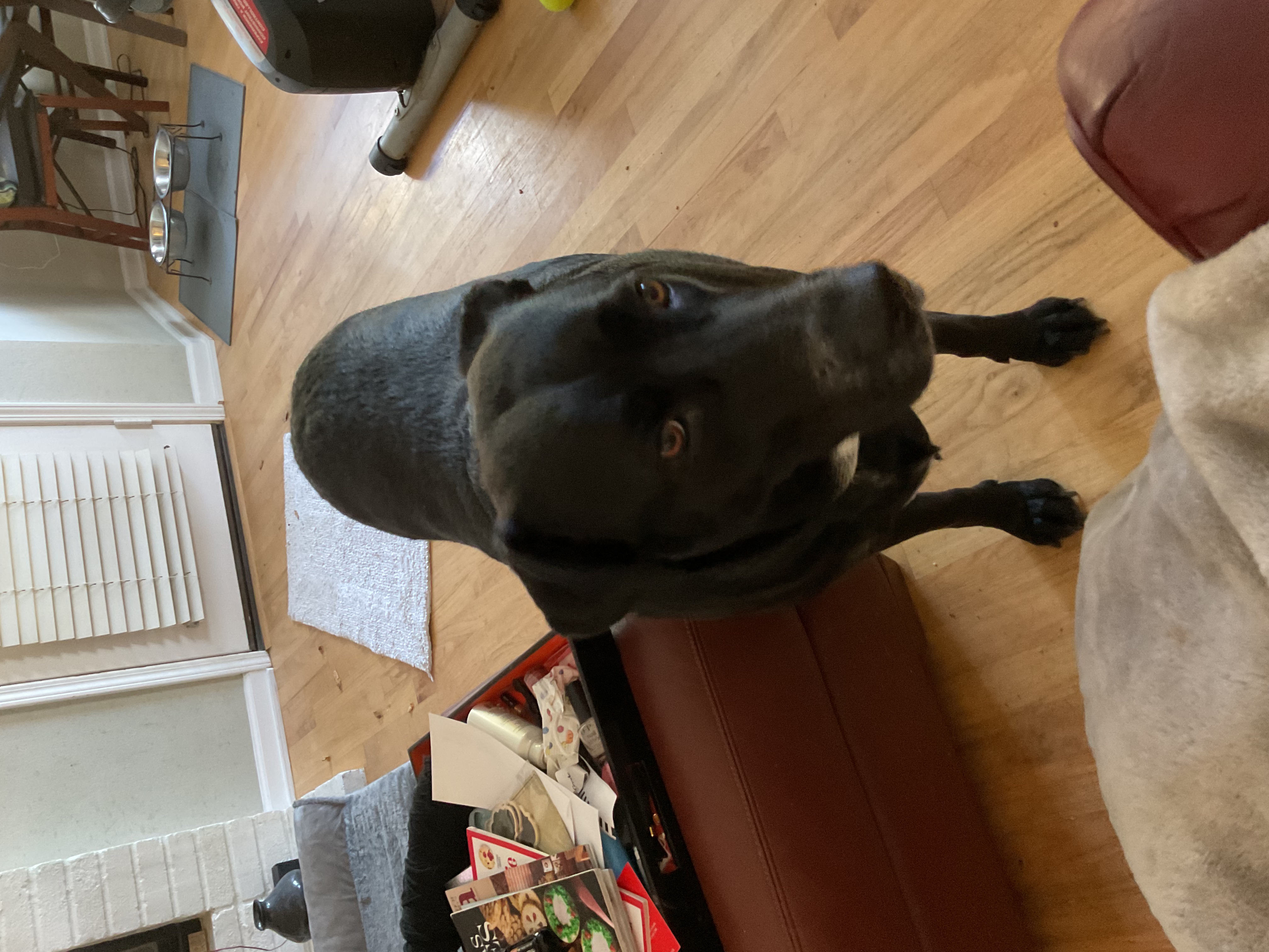 Lucy: 3 year-old spayed female black Lab mix, 104 lbs