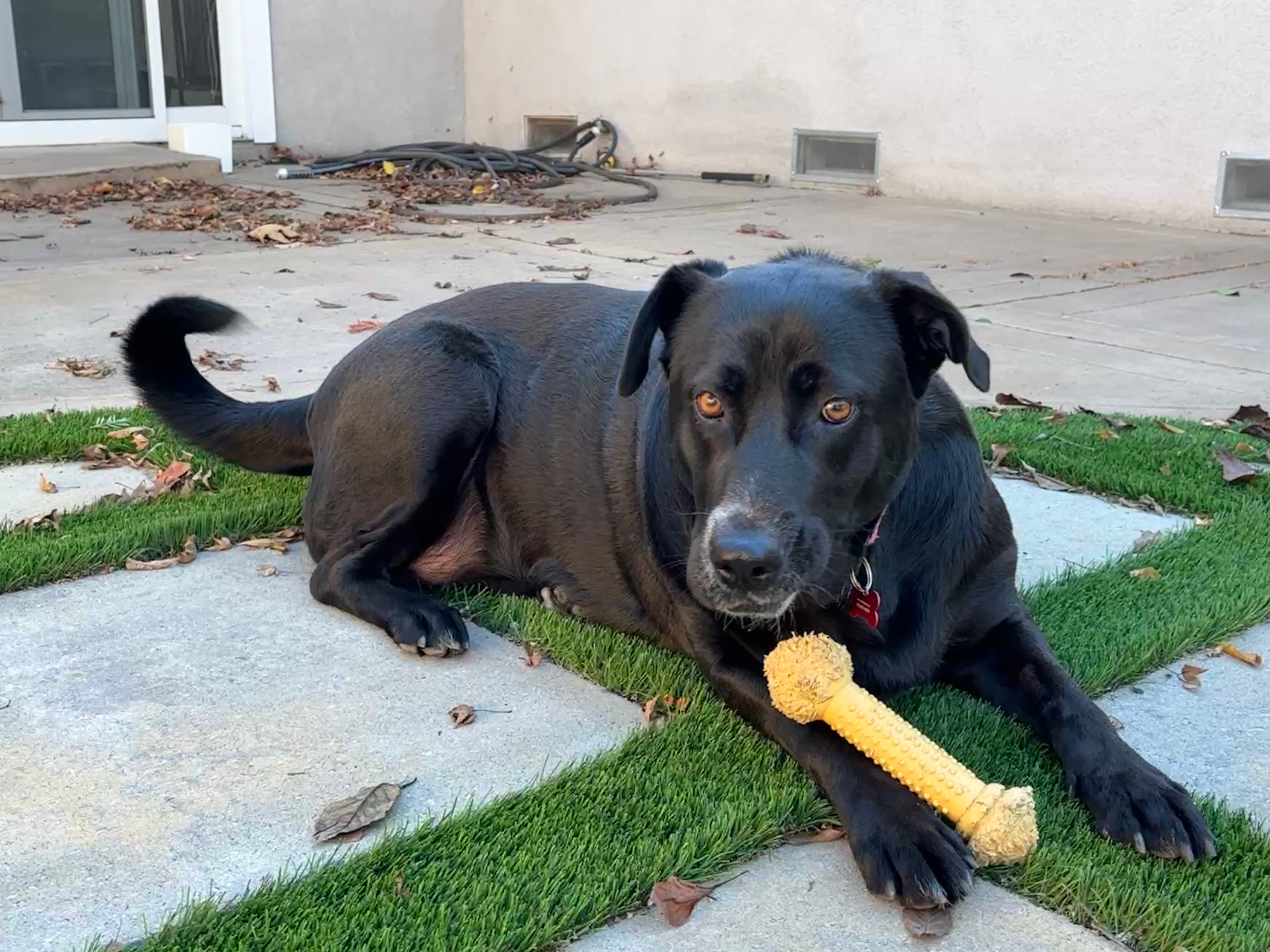 Background: This sweet happy girl was adopted from the shelter in fall 2024 by a blind woman who lives in a pet-friendly apartment complex for disabled senior citizens. It's clear that other residents of the complex are fond of Lucy, we got lots of friendly hellos and greetings as I was walking the halls with Lucy and sitting with her in the building lobby. Her owner gave Lucy lots of love and attention, but sadly came to the realization that she can't provide the kind of home that a large breed dog needs. Lucy didn’t get out for regular walks and her exercise was limited to playing with toys and fetch inside the apartment. Not surprisingly, Lucy became rather overweight. GGLRR has moved Lucy to a foster home where she is now enjoying having access to a backyard to explore.