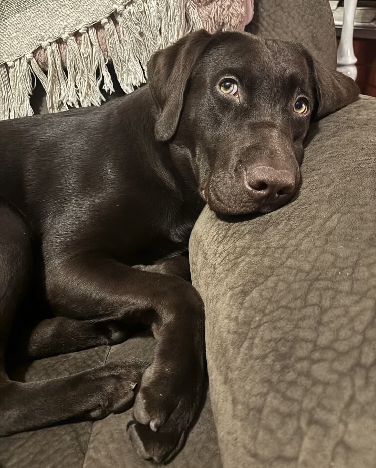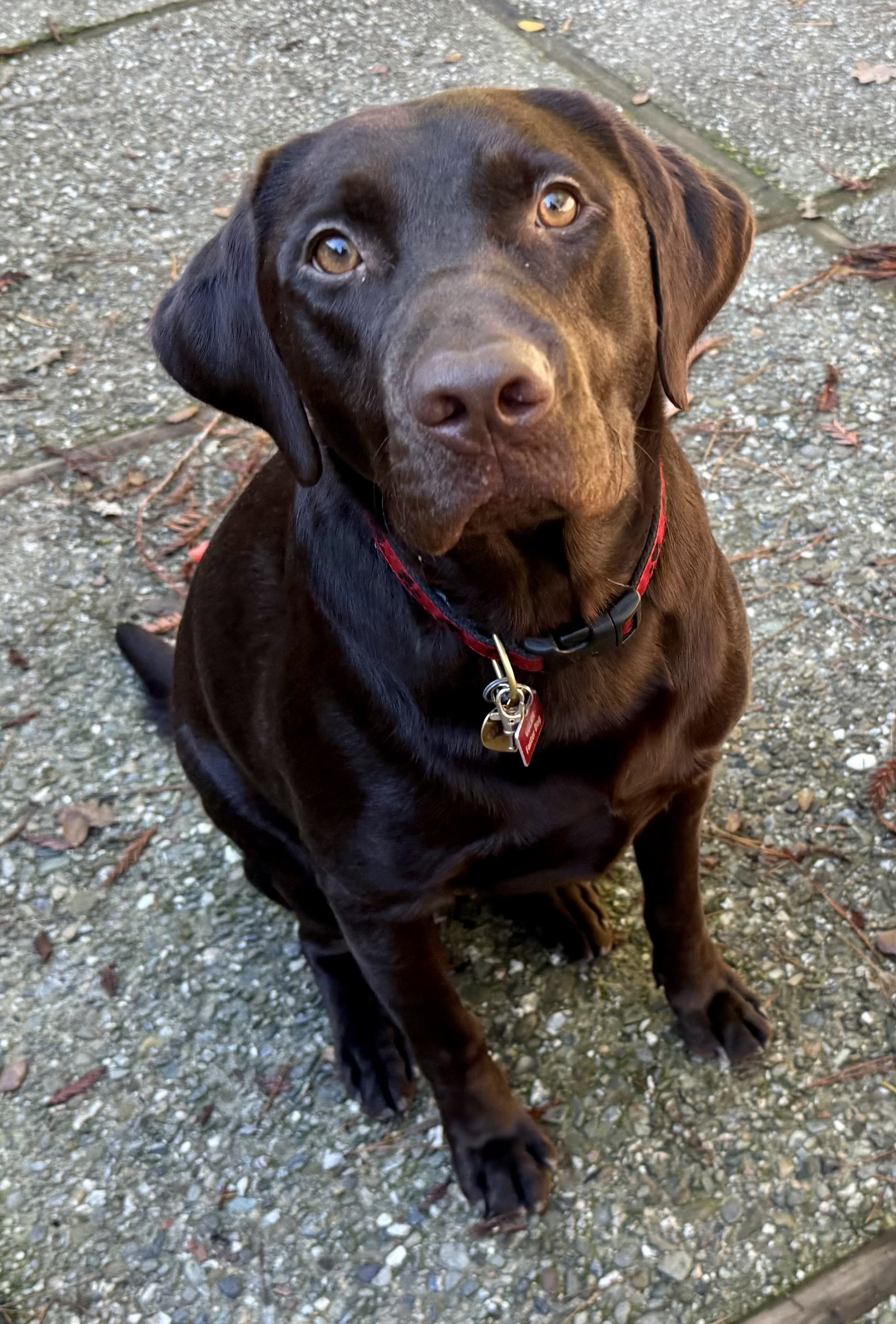 Reid 20-month-old male chocolate Lab 80 lbs Neutered