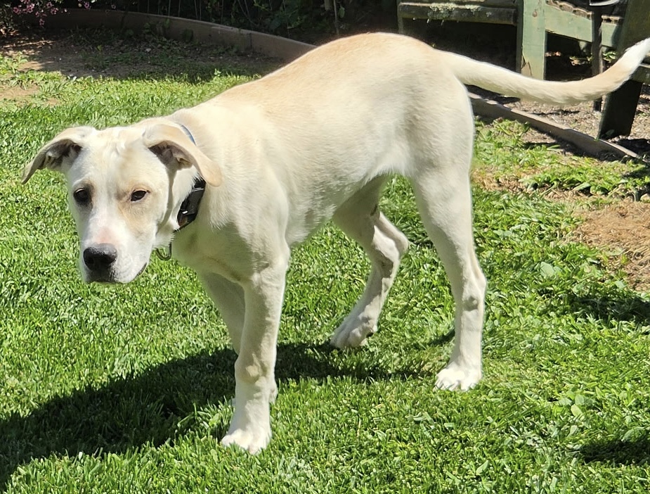 Sadie 5-month-old female yellow Lab mix Not yet spayed 45 pounds