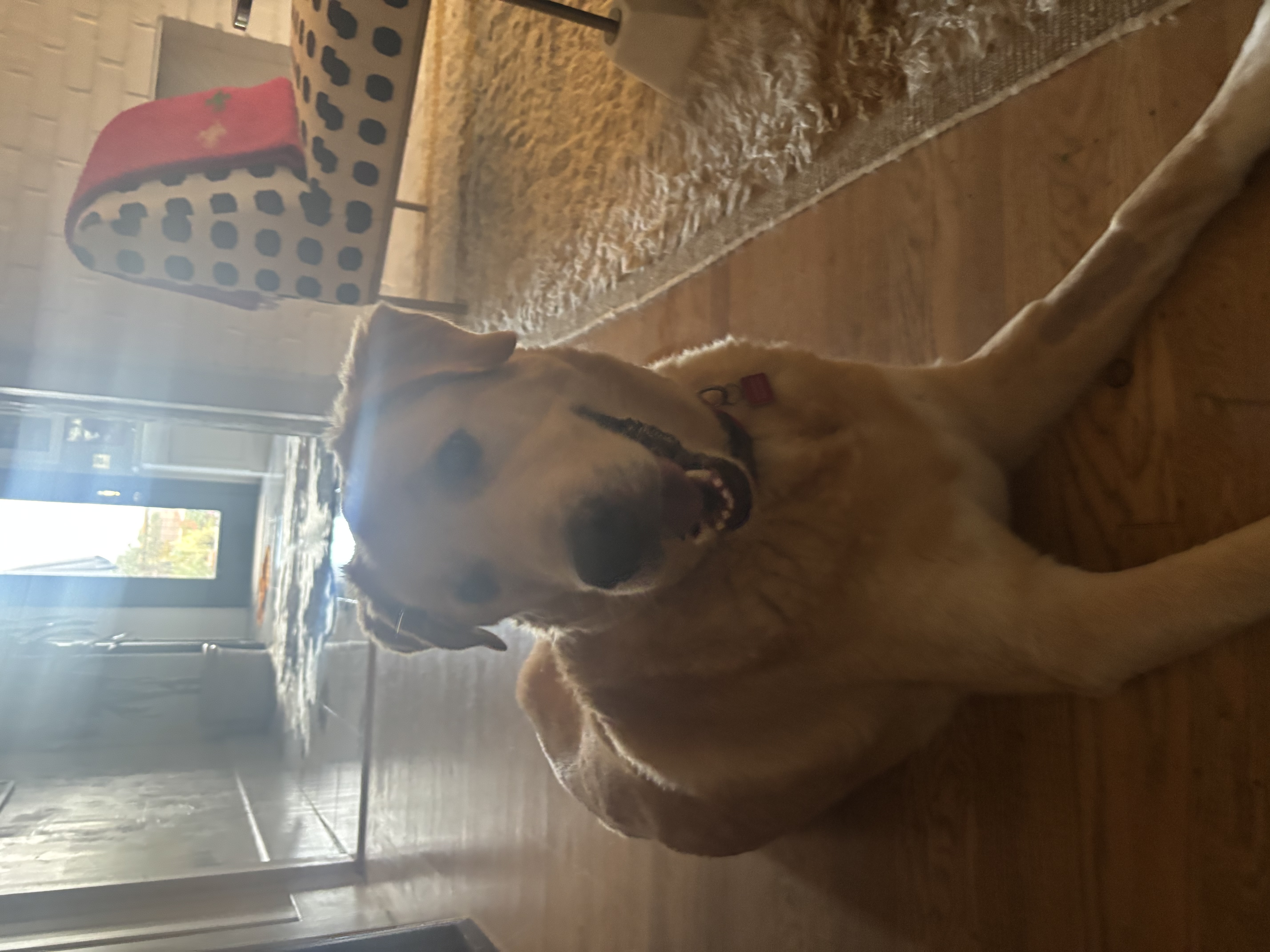 What Waylon's Foster Family Says: Waylon is 109 pounds gentle sweet giant and is the easiest Lab I have fostered. He loves cookies and takes them softly (not a snapping turtle). He loves belly rubs and wags his tail when you are talking sweetly to him. He stops on walks (when I stop) and he does not pull…However, If he sees a squirrel or a cat that is close in proximity, he is inconsistent about going after it or leaving it alone... I don’t get it…. He walks twice a day with all three of our dogs and there are no issues in our house with all the other dogs. He is totally housebroken - does not pee inside and will let me know when he needs to go outside. Waylon has a skin rash which we are working on with medicated shampoo and medicated mousse. Overall, he has been an amazing addition in our home and will be good with a home that has other dogs.