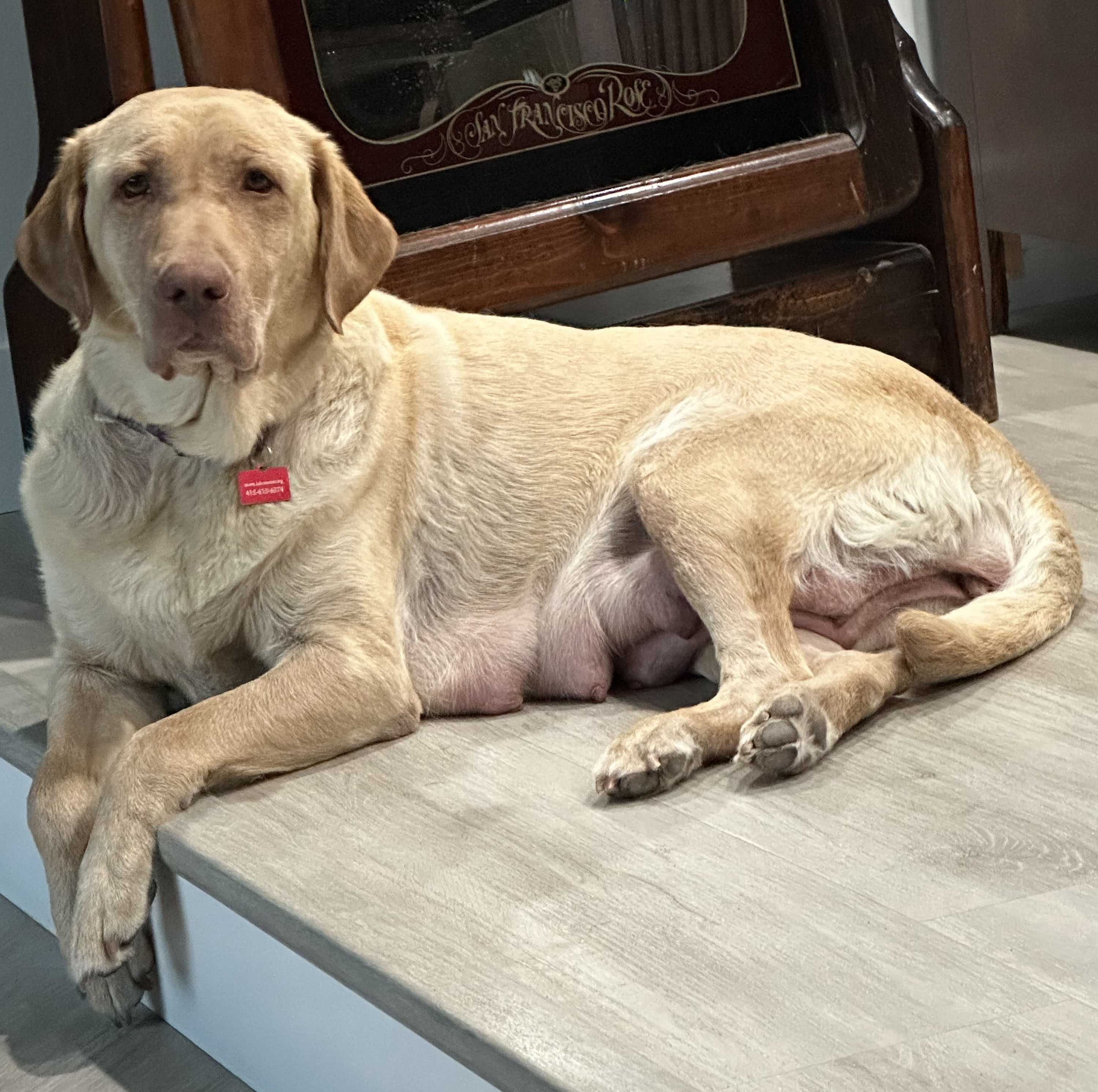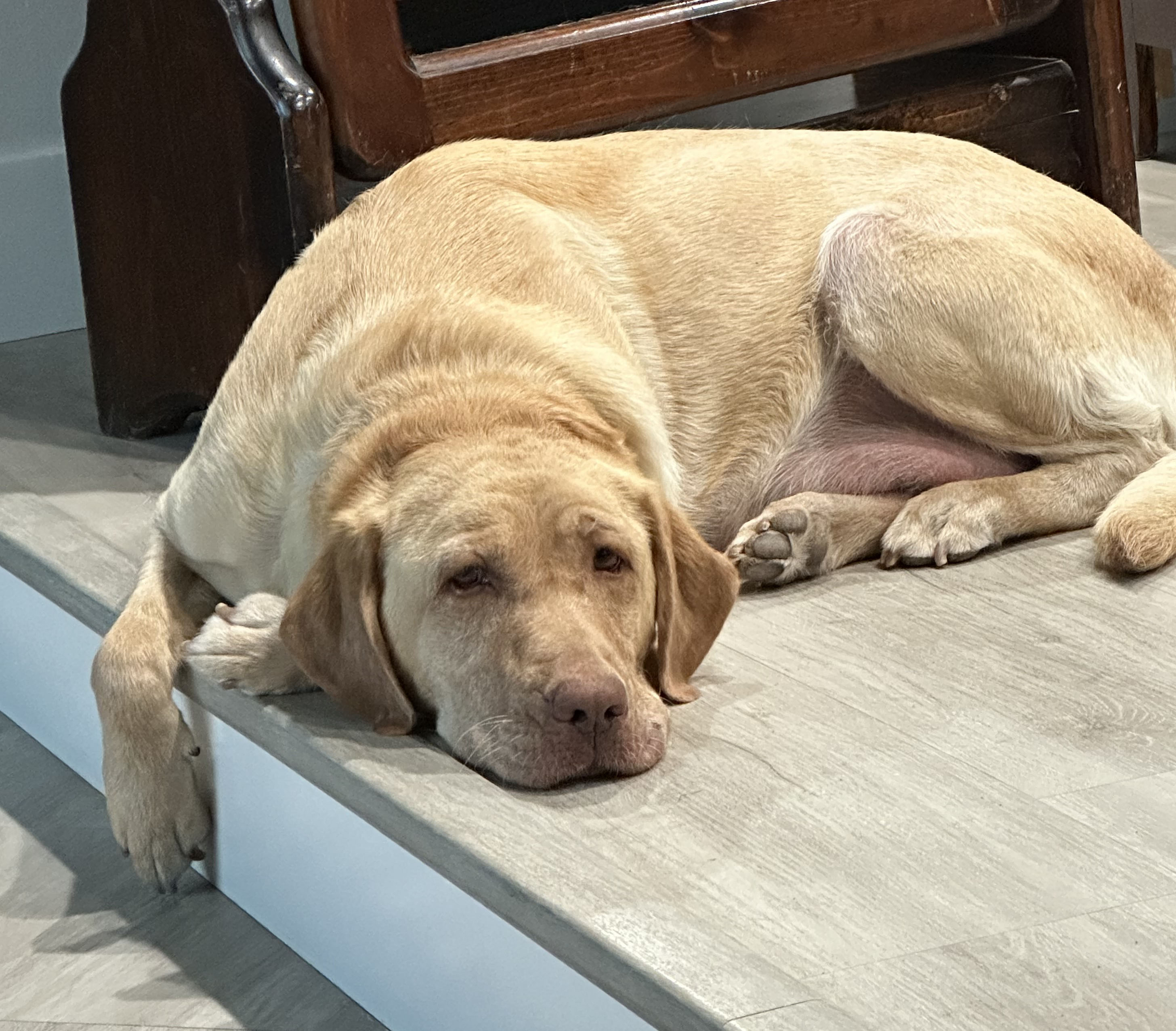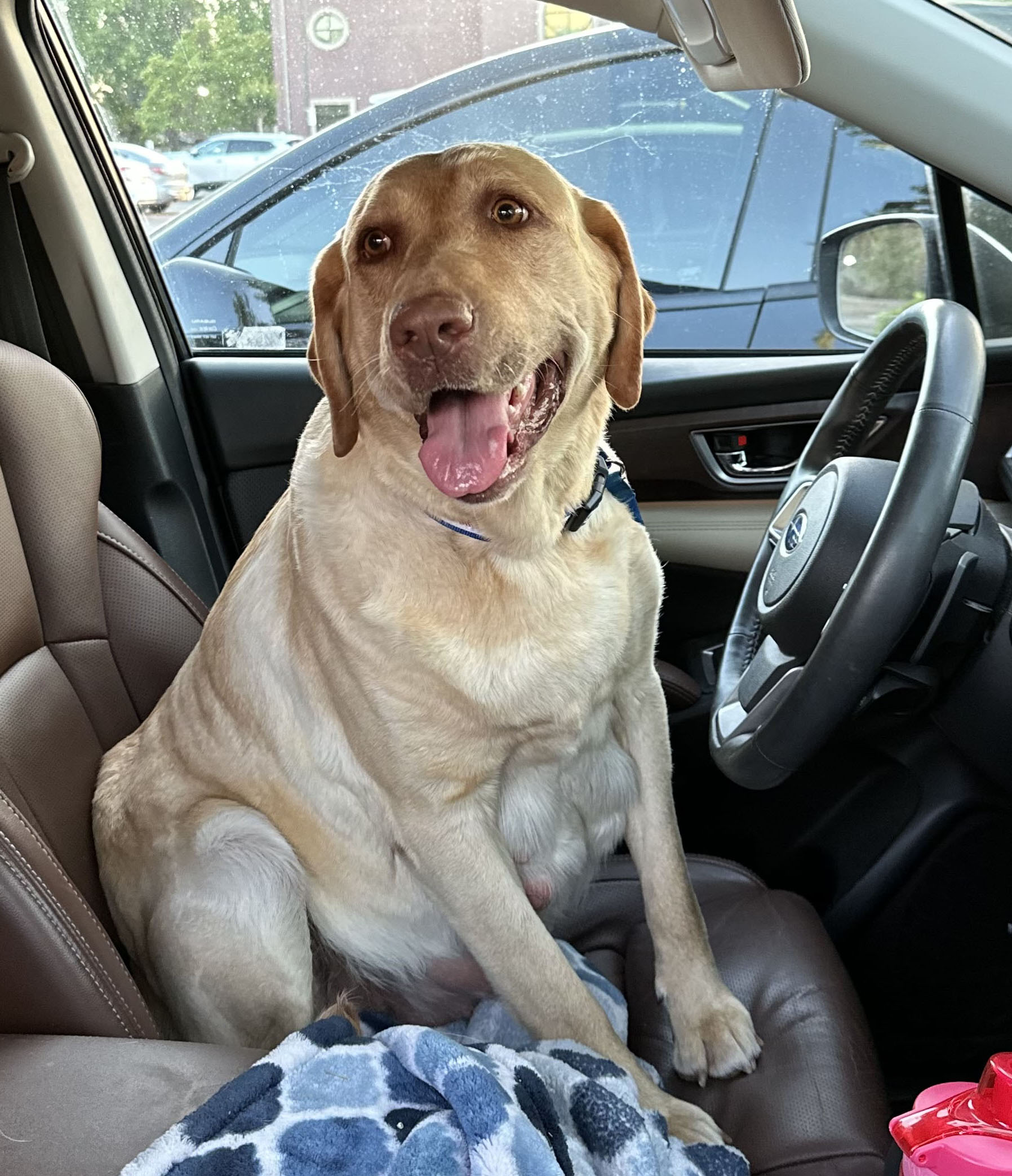 Zoe ~2-year-old female yellow Lab, 75-lbs, Spayed